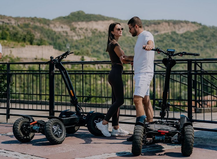 The 4x4 drive helps them handle challenging terrain, mountain trails, forest roads, and muddy sections with ease, while providing stability and easy control. They are so lightweight that they are great for both off-road adventures and city rides. You can even take them with you in the trunk of your car. This makes them an ideal choice for travelers, camping enthusiasts, hoteliers, and adventure businesses looking to give their guests unforgettable moments. With these electric 4x4 scooters, every ride is a real adventure – whether it's on a mountain slope, coastal path, or forest road, the feeling of freedom is unparalleled.