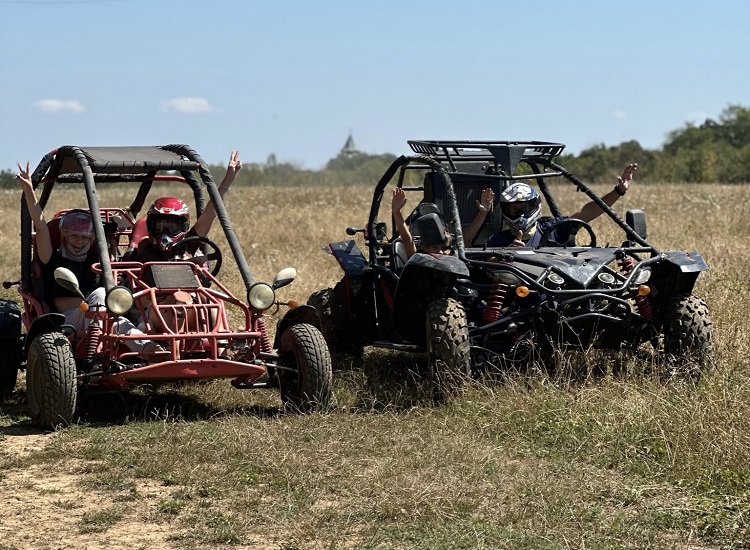 On the other hand, buggies, also called dune buggies or off-road go-karts, have a car-like design, with side-mounted seats. Buggies are often fitted with roll bars for safety and larger wheels. Thanks to this, they handle rough terrain more efficiently.