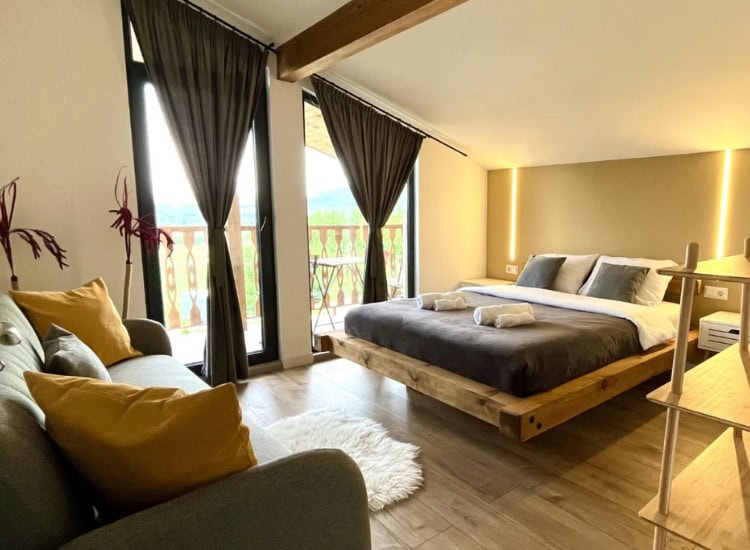 The apartment Includes balcony with beautiful city views, double bed, sofa bed and armchair.