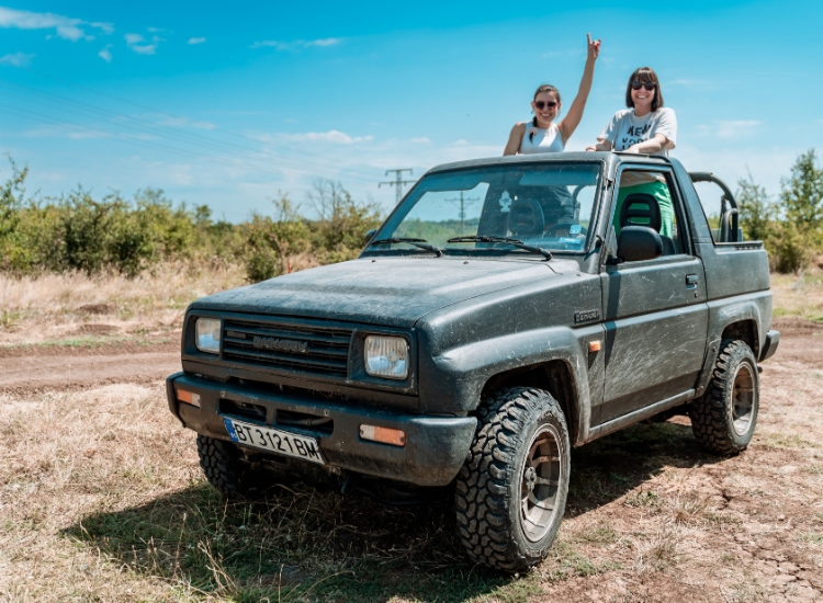 Разполагаме с 1 брой CF Moto 550сс двуместно, 1 брой триместно БЪГИ и 1 брой шестместно БЪГИ с мощност 1000сс. БЪГИ-тата са с валидна регистрация, което позволява управлението им по републиканската пътна мрежа. За управлението на БЪГИ висок клас само по офроуд терени не се изисква шофьорска книжка. В случай, че изберете разходка, в която е включено управление по републиканската пътна мрежа, се изисква валидна шофьорска книжка категория “Б”.